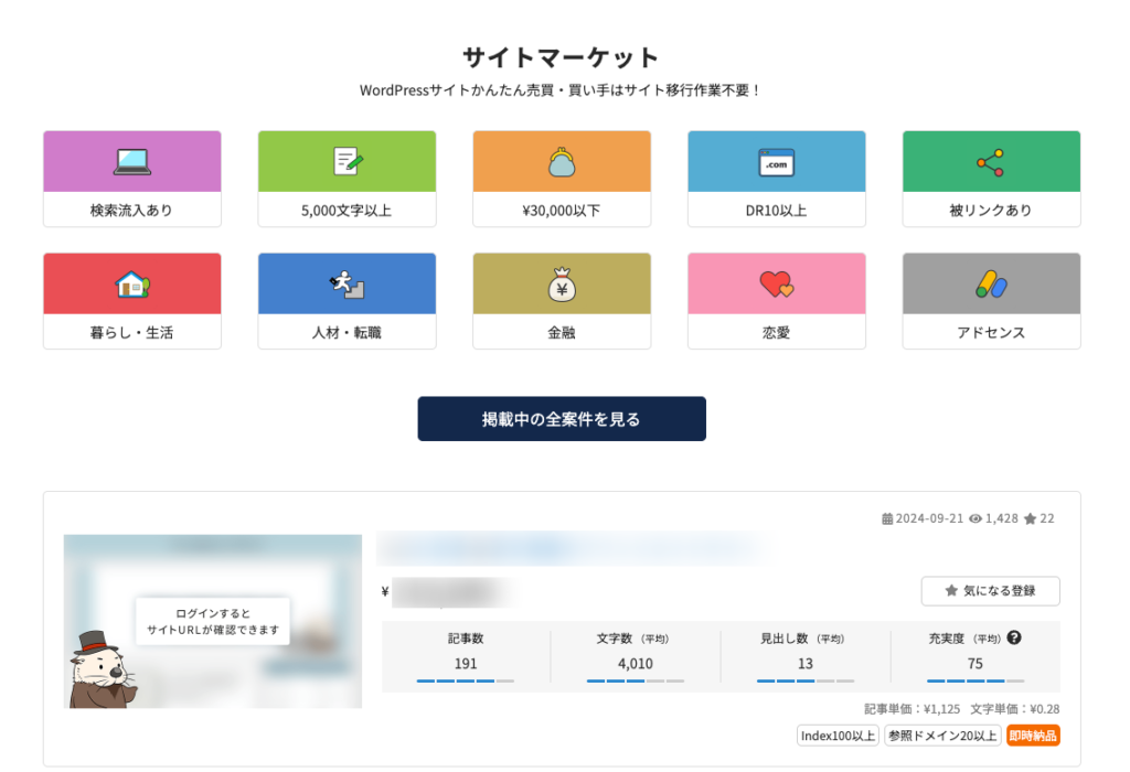 それでも特化ブログよりは人気が落ちるというだけで、ラッコM&Aでは積極的に売買されている案件の一つです。